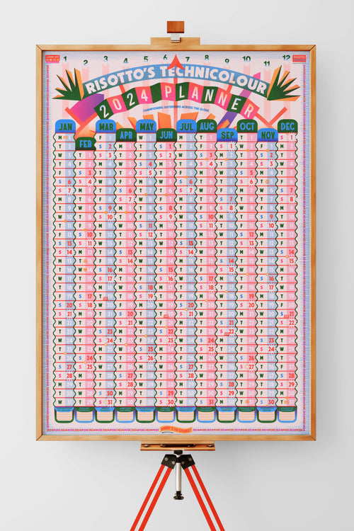 RISOTTO 2024 Calendar A3 Risograph Wall Hanger | Printed in Scotland